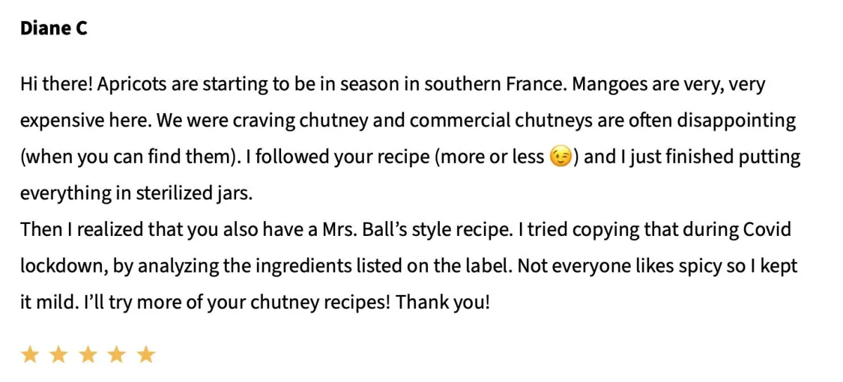I recreated the chutney from my childhood and fell in love with the process. My passion for chutneys only grew as I began experimenting with all kinds of fruits, crafting unique and delicious flavors that you won't find in stores.